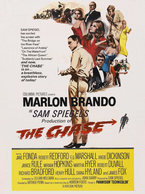 The chase (1966) - lesser known drama directed by Arthur Penn, starring Marlon Brando, Robert Redford, Jane Fonda, E.G. Marshall, Angie Dickinson, Miriam Hopkins, Robert Duvall and James Fox