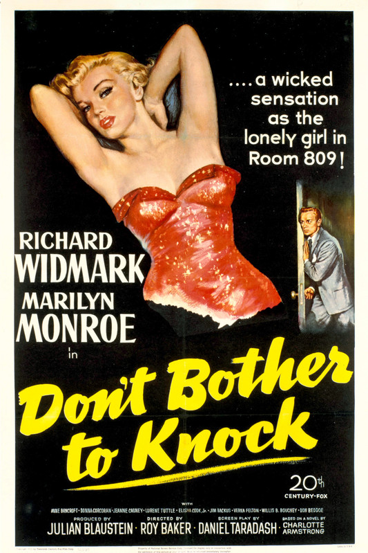 Don't bother to knock (1952) - little known film noir directed by Roy Ward Baker, starring Richard Widmark, Marilyn Monroe, Anne Bancroft and Elisha Cook Jr.